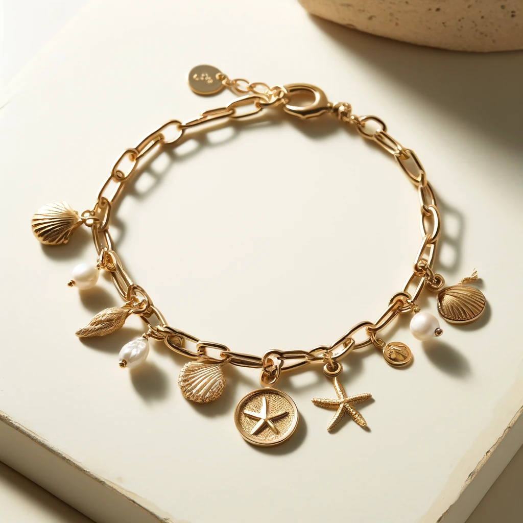 Setze ein Statement und bringe die Schönheit des Meeres in deinen Alltag. Bestelle jetzt und genieße die zeitlose Eleganz unseres goldenen Charm-Armbands mit Meeresmotiven.